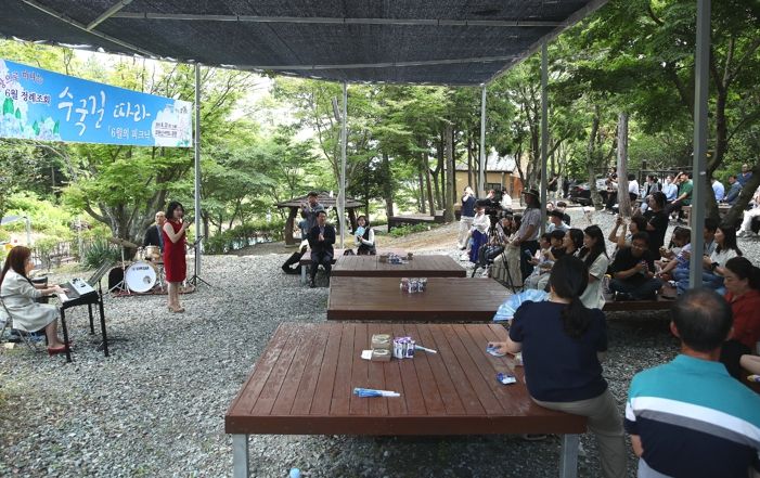 이번에는 사무실을 벗어나 보은산 V랜드 공원에서 아름다운 음악과 함께하는 야외 행사로 진행됐다. 강진원 군수가 직접 처음 열리는 수국길축제에 대해 설명하고, 수국길 축제장을 둘러본 직원들은 축제 관련 아이디어나 건의 사항 등을 자유롭게 말하며 서로 소통하는 시간을 가졌다.