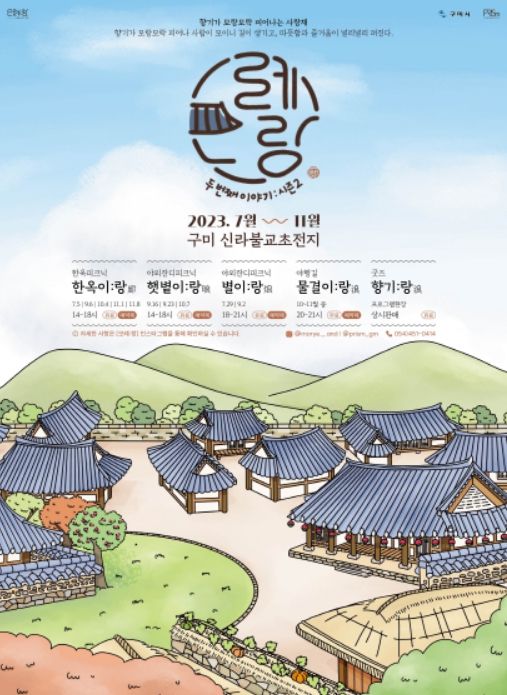 인사이드피플 강애자 기자 | 구미시는 11월까지 4개월간 신라불교초전지와 모례마을 일대에서 (주)생활예술콘텐츠연구소 프리즘 주관으로 2023 신라불교초전지 특화관광프로그램,'모례:랑(廊) 두 번째 이야기 시즌2'를 개최한다.