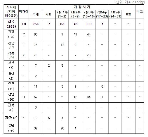인사이드피플 강애자 기자 | 해양수산부는 7월 1일부터 전국 264개 해수욕장이 순차적으로 개장을 시작한다고 밝혔다.