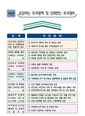 이 밖에도 도는 ▲기획부동산 투기 대처를 위한 불법행위(피해) 신고센터 지속 운영 ▲도민 맞춤형 경기부동산포털 운영(최신 부동산정보 실시간 연계) ▲지적재조사의 확산 및 신뢰성 확보(상반기 중 사업지구 지정 절차 이행) ▲주소정보시설 확충·유지관리 등을 올해도 계속할 계획이다.
