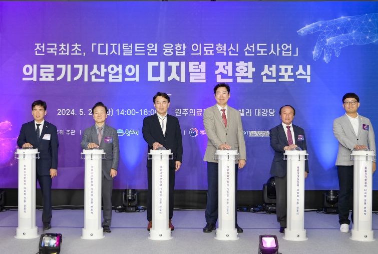 전국 최초 지자체에서 추진되는 ‘디지털트윈 융합 의료혁신 선도사업’착수에 따라 오는 28일 원주의료기기테크노밸리에서 의료기기산업 디지털(AI) 전환 선포식이 개최된다.