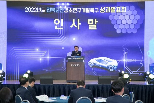시는 강소특구 2차년도 육성사업의 주요 활동 성과를 보고하고 향후 추진 방향에 대한 설명을 위해‘전북 군산 강소연구개발특구 2022년도 성과발표회’를 27일 군산 새만금컨벤션센터에서 개최했다.