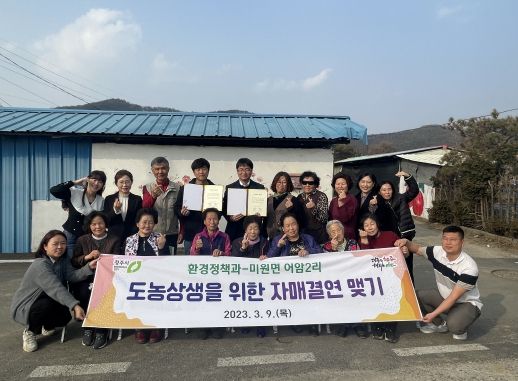 청주시 환경정책과와 어암2리는 농촌사랑운동 자매결연 증서를 교환했다.