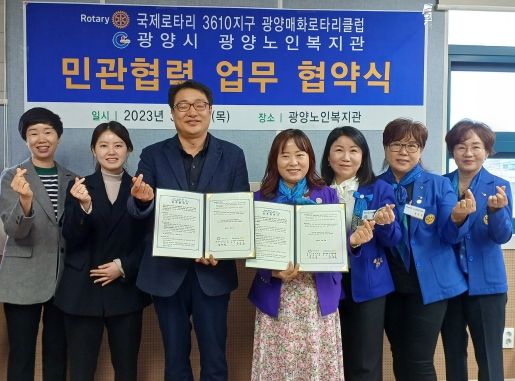인사이드피플 김성연 기자 | 광양매화 로타리클럽은 9일 광양노인복지관에서 취약계층 노인 치과 치료 ‘틀니, 인레이(Inlay), 크라운’ 지원을 위한 업무 협약을 체결했다고 밝혔다.