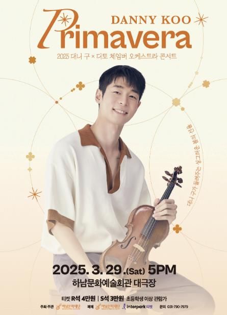 인사이드피플 노재현 기자 | (재)하남문화재단은 오는 3월 29일 오후 5시 하남문화예술회관 대극장에서 '2025 대니 구 콘서트 ‘Primavera’'를 개최한다.