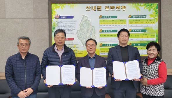 산내면행정복지센터에서 열린 이날 협약식에는 대동녹지건설(주) 강완수 대표이사, 박수복 대현4리 이장, 김재훈 산내면장이 함께 했다.