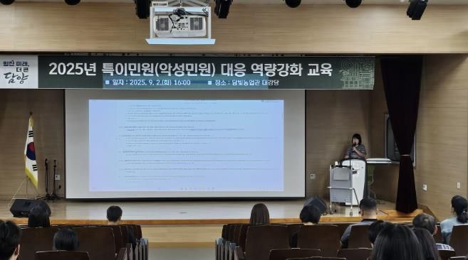 인사이드피플 노재현 기자 | 담양군은 2일 담빛농업관 대강당에서 전 부서 직원을 대상으로 특이·악성민원 대응 역량강화 교육을 추진했다.