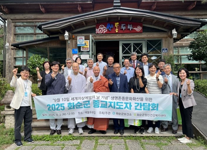 이번 간담회에는 만연사와 개천사 주지스님, 기독교연합회 소속 13명의 목사님, 화순군보건소, 화순군정신건강복지센터 관계자 등 20여 명이 참석해 ‘생명존중 문화 조성을 위한 종교지도자 간담회’라는 주제로 자살 예방을 위한 다양한 의견을 나누었다.