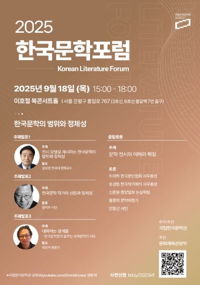 인사이드피플 장은미 기자 | 문화체육관광부는 국립한국문학관과 함께 9월 18일(목) 오후 3시, 이호철 북콘서트홀(서울 은평구)에서 ‘2025 한국문학포럼’을 개최한다.