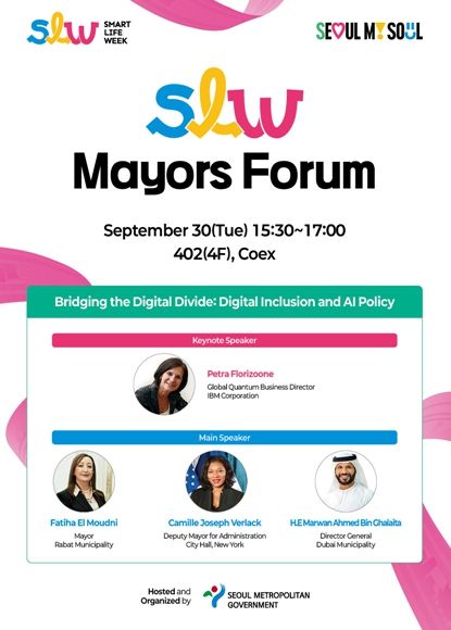 SLW 2025의 하이라이트 중 하나인 메이어스 포럼은 ‘디지털 격차 해소를 위한 디지털 포용과 AI 정책(Bridging the Digital Divide: Digital Inclusion and AI Policy)’을 주제로 열린다.