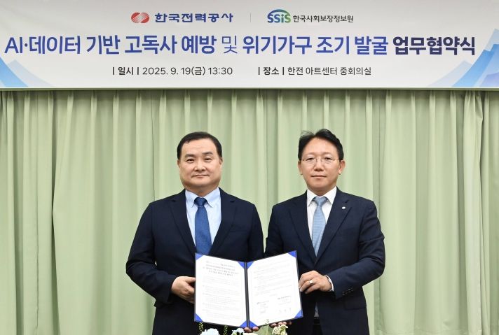인사이드피플 심정보 기자 | 한국전력이 9월 19일 한전 아트센터에서 복지부 산하 한국사회보장정보원과 ‘AI·전력데이터 활용 복지 사각지대 발굴’을 위한 업무협약(MOU)을 체결했다.