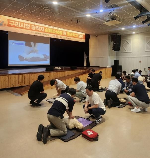 인사이드피플 노재현 기자 | 구리시는 9월 22일부터 23일까지 이틀간 청사 대강당에서 공직자 100여 명을 대상으로 '심폐소생술 등 응급처치 교육'을 진행했다.