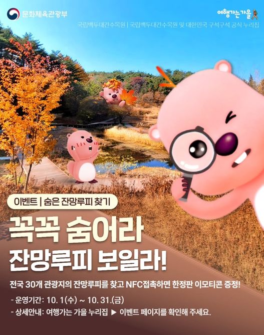 - 상세안내: 여행가는 가을 누리집→이벤트 페이지를 확인해 주세요.