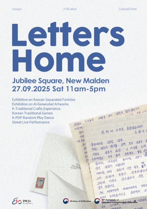 인사이드피플 장은미 기자 | 통일부는 9월 27일, 영국 최대 한인 밀집 지역인 뉴몰든에서 ‘Letters Home’(집으로 보내는 편지)을 주제로 한 재외동포 통일문화행사를 개최한다.