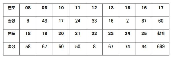 2023시즌 롯데로 이적한 김상수는, 2024년 5월 9일 사직 한화전에서 개인 통산 600경기 출장 기록을 달성했다. 올 시즌에도 44경기에 출장하며, 개인 통산 699경기 출장을 기록하고 있다.
