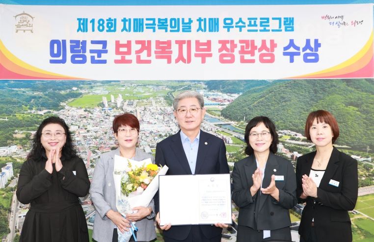 인사이드피플 장은미 기자 | 의령군은 지난 26일 진주시에서 열린 제18회 치매극복의 날 기념행사에서 치매우수프로그램 부문 우수기관으로 선정되어 보건복지부 장관상을 수상했다고 밝혔다.