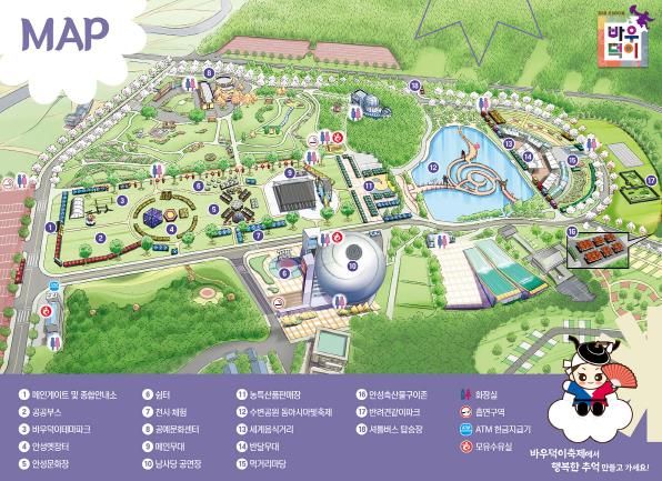 특히 음식 거리와 주막거리, 세계 음식 코너 등으로 나눠 한우국밥과 떡을 비롯한 한식, 중식, 일식, 푸드트럭 메뉴 등을 즐길 수 있고, 스페인, 미국, 러시아, 태국 등 다양한 국가의 이국적인 요리를 만날 수 있다.