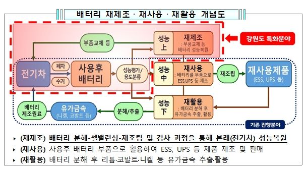 특히, 이번 협약을 계기로 강원도는 전기차 사용 후 배터리에 대한 안전성 평가·인증체계 마련, 배터리 재제조분야 등 기반구축을 목표로 협력할 계획이다.