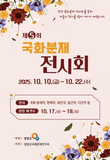 인사이드피플 강애자 기자 | 양양군 국화분재연구회(회장 윤종욱)는 오는 10일부터 22일까지 13일간 양양군농업기술센터에서 ’제5회 국화분재 전시회‘를 개최한다.