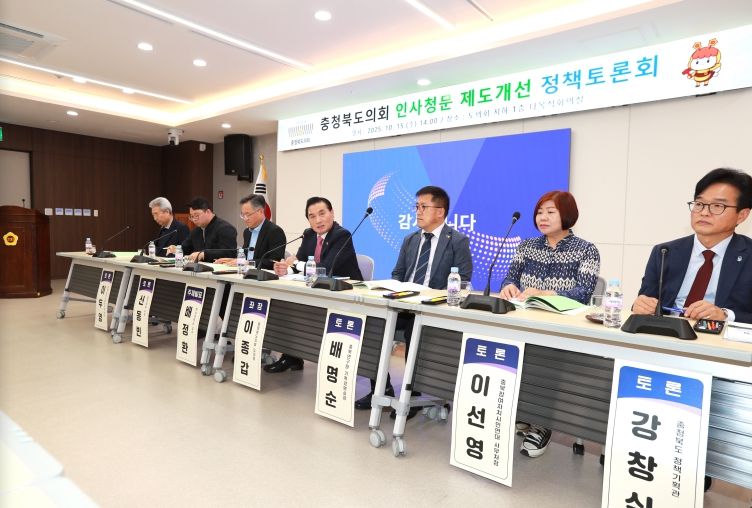 인사이드피플 김재윤 기자 | 충북도의회는 15일 도의회 다목적회의실에서 ‘충청북도의회 인사청문 제도개선 정책토론회’를 열고, 지방의회의 인사청문 제도를 실질적 검증 제도로 정착시키기 위한 개선 방안을 논의했다.