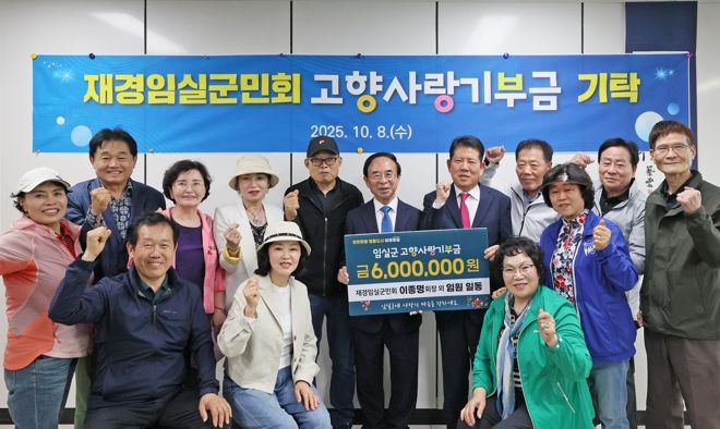 재경임실군민회 이종명 회장은“회원들이 한마음으로 뜻을 모아 마련한 이번 기부금이 군민의 복지 향상과 지역 발전에 조금이나마 보탬이 되길 바란다”며“앞으로도 고향사랑기부제에 지속적으로 참여하고, 고향 임실과 향우회원들이 더 자주 교류할 수 있도록 노력하겠다”고 전했다.