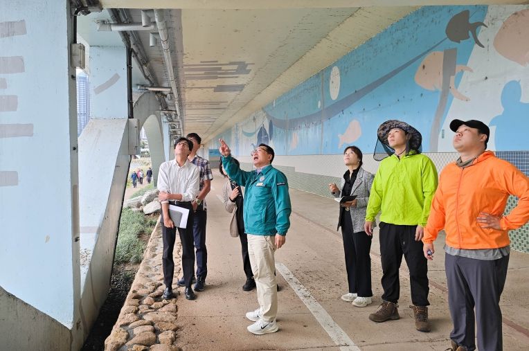 인사이드피플 김재윤 기자 | 울산시의회 문화복지환경위원회 안수일 의원은 16일 오전, 태화강 하상교(남산로 하부)인근 비점오염저감시설 현장을 방문해 시설 운영 실태와 유지 관리 상황을 점검했다.