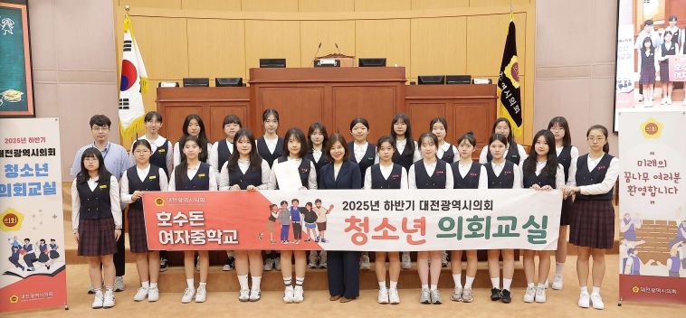 인사이드피플 김재윤 기자 | 호수돈여자중학교 학생들이 16일, 대전시의회(의장 조원휘)를 방문해 하루 동안 시의회의 운영 과정을 직접 체험하는 뜻깊은 시간을 가졌다.