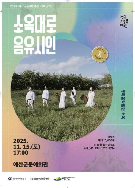 인사이드피플 강애자 기자 | 예산군문예회관은 오는 11월 15일 오후 5시, 퓨전국악 공연 ‘소옥대로 음유시인’을 선보인다.