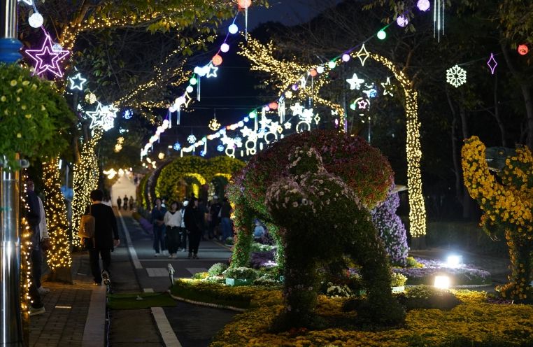 공룡, 꽃 터널, 캐릭터 등 각양각색의 조형물을 활용한 4개의 테마존, 분재국화 전시장 등이 3만여점 다양한 국화로 물들고, 야간에는 LED 경관 조명으로 더욱 아름다워진다.