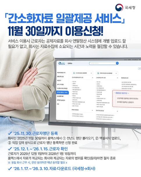 인사이드피플 장은미 기자 | 「간소화자료 일괄제공 서비스」 11월 30일까지 이용신청!