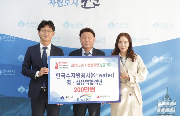 인사이드피플 노재현 기자 | 한국수자원공사 영·섬유역협력단이 연말을 맞아 취약계층과 따뜻한 정(情)을 나누고자 기부금 200만 원을 22일 군산시에 전달했다.
