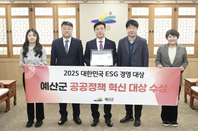 인사이드피플 노재현 기자 | 예산군은 국회의원회관 제1소회의실에서 열린 제2회 2025 대한민국 ESG 혁신 어워즈(대한민국 ESG 경영대상) 시상식에서 공공정책 혁신 부문 대상을 수상했다고 23일 밝혔다.