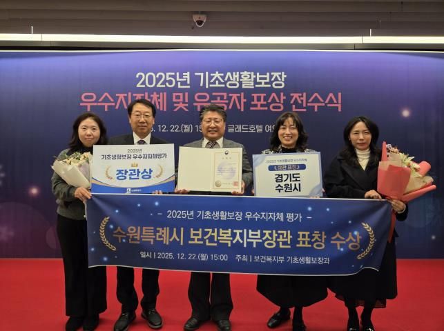 인사이드피플 노재현 기자 | 수원특례시가 보건복지부 주관 ‘2025년 기초생활보장·긴급지원 사업’ 평가에서 우수 지자체로 선정돼 보건복지부 장관 표창을 받았다. 시상식은 22일 서울 글래드호텔에서 열렸다.