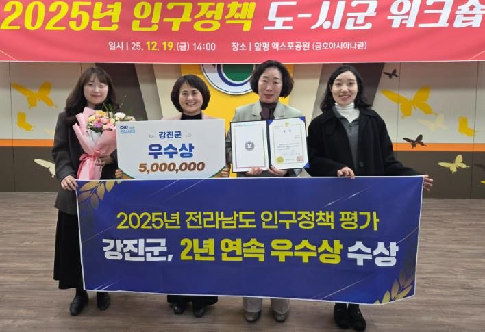 인사이드피플 노재현 기자 | 강진군이 전라남도가 실시한 2025년 인구정책 우수 시·군 평가에서 ‘우수상’을 수상했다.