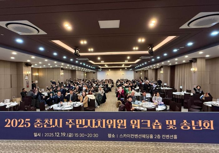 인사이드피플 노재현 기자 | 춘천시 주민자치협의회(회장 엄상필)는 한 해 주민자치 활동을 되돌아보고 새해 도약을 다짐하는 ‘2025 춘천시 주민자치위원 워크숍 및 송년회’를 개최했다.