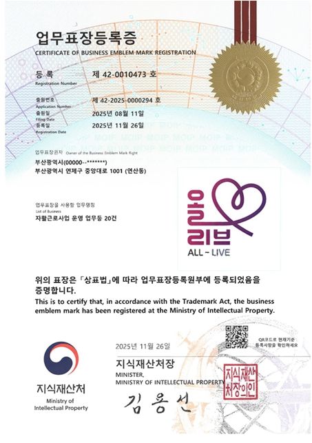 박형준 시장은 “이번 '올리브(ALL-LIVE)' 정책 브랜드 상표 등록은 자활을 넘어 '모두 함께 잘 사는 부산'을 실현하기 위한 부산형 자활 혁신 브랜드의 의미 있는 결실”이라며, “상표 등록을 계기로 우리시 자활정책 전반에 브랜드를 일관되게 적용하고, 올리브를 자활 우수 모델로서 전국으로 확산하도록 더욱 노력하겠다”라고 전했다.