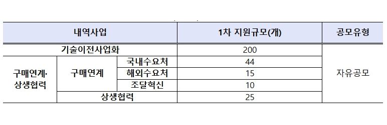 이번 사업은 기존 중소기업기술혁신개발사업 내 분산되어 있던 기술이전 및 구매연계 과제를 ‘민관공동기술사업화(R&D)’로 통합·신설한 것으로, 공공기술의 민간 이전과 수요 기반의 R&D를 정합성 있게 연결하여 중소기업의 사업화 성공률을 높이는 데 목적이 있다.