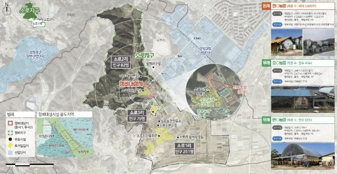 시는 2024년 농림부 공모사업에 선정됨에 따라 총사업비 100억원(국비 50억, 도비 15억, 시비 35억)을 확보하고 2028년까지 5년간 사업을 추진할 계획이다. 돈사와 우사 1만6,994㎡를 철거하고, 마을회관 등 생활SOC 시설, 경관농지 등 주민 편의시설을 조성하는 것이 목표다.