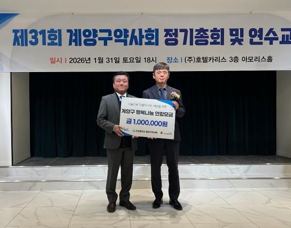 인사이드피플 노재현 기자 | 인천광역시 계양구는 지난 1월 31일 열린 ‘제31회 계양구 약사회 정기총회’에서 지역 보건 향상과 사회공헌 활동에 기여한 유공자들에게 표창장을 수여했다.