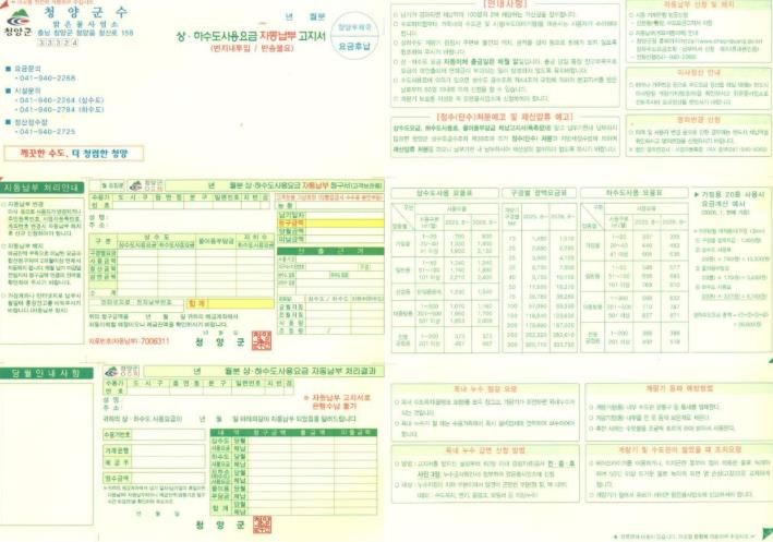 인사이드피플 노재현 기자 | 청양군이 군민의 소중한 개인정보를 보호하고 고지서 가독성을 높이기 위해 상·하수도 요금 고지서를 기존 지로형에서 ‘봉합형’으로 전면 개편한다.