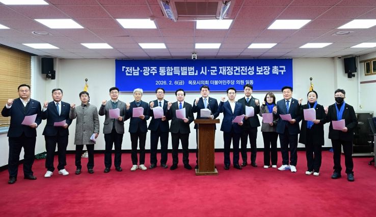 인사이드피플 김재윤 기자 | 목포시의회 더불어민주당 의원들은 6일, '전남·광주 통합특별법'에 시군 재정건전성 보장을 명시할 것을 촉구하는 성명을 발표했다.