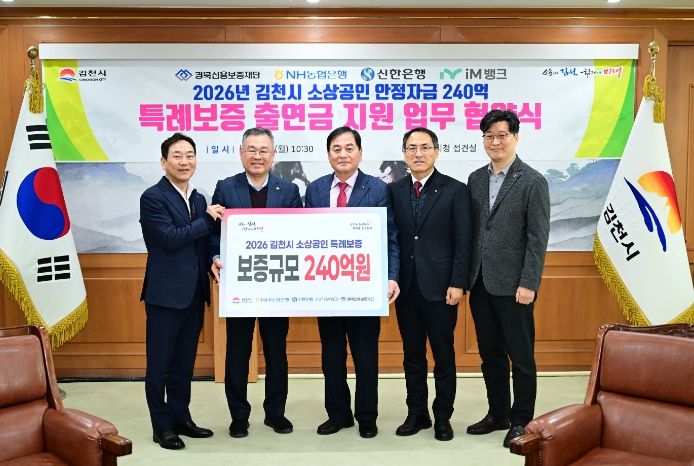 인사이드피플 심정보 기자 | 김천시는 관내 소상공인 경영 안정자금 지원을 위해 경북신용보증재단, NH농협은행, 신한은행, iM뱅크와 협약을 맺고 총 240억 원 규모의 소상공인 특례 보증 지원에 나선다고 9일 밝혔다.