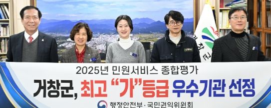 인사이드피플 노재현 기자 | 거창군은 국민권익위원회·행정안전부 공동 주관한 ‘2025년 민원 서비스 종합평가’에서 최고 등급인 ‘가등급’에 선정돼 전국 최고 수준의 민원 서비스를 인정받았다.