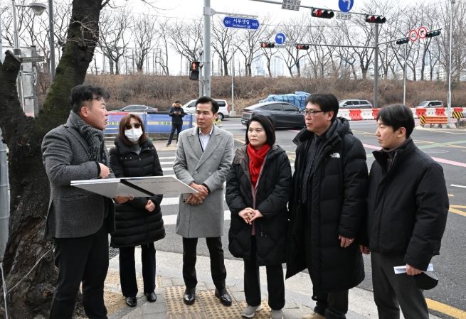 인사이드피플 김재윤 기자 | 서울특별시의회 시민권익위원회 위원으로 활동하고 있는 박춘선 의원(강동3, 국민의힘)이 2월 10일 교통정체로 시민 불편이 지속되고 있는 가산한내보도육교 앞 교차로를 직접 찾아 현장 점검을 실시했다. 현장에는 서울특별시의회 현장민원과와 서부간선도로 주관 부서인 서울시 도로계획과, 도시기반시설본부 관계자가 함께 했다.