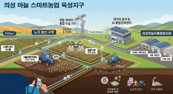 이번 사업 선정으로 의성군은 지난 2023년부터 사곡면에 시범사업으로 추진해온 노지스마트팜 모델 구축 성과를 2028년까지 3년간 단계적으로 의성읍 등 인근 9개 읍‧면으로 확산할 계획이다.