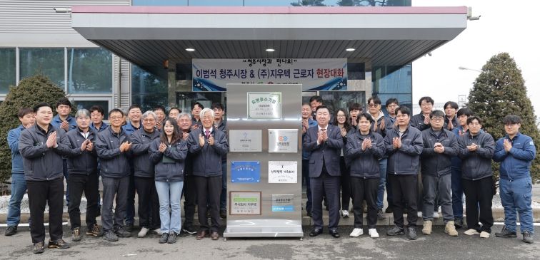 인사이드피플 심정보 기자 | 청주시는 6일 유망중소기업으로 선정된 ㈜지우텍을 방문해 현장 근로자들의 노고를 격려하고 의견을 청취하는 ‘기업 현장 소통의 날’ 행사를 개최했다.
