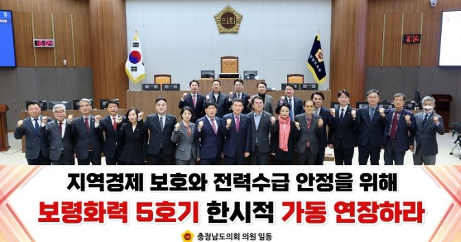 이어 “전력수급 안정과 지역경제 보호를 위해 보령화력 5호기의 한시적 가동 연장과 발전소 폐지지역에 대한 실질적인 지원대책 마련이 필요하다”고 말했다.