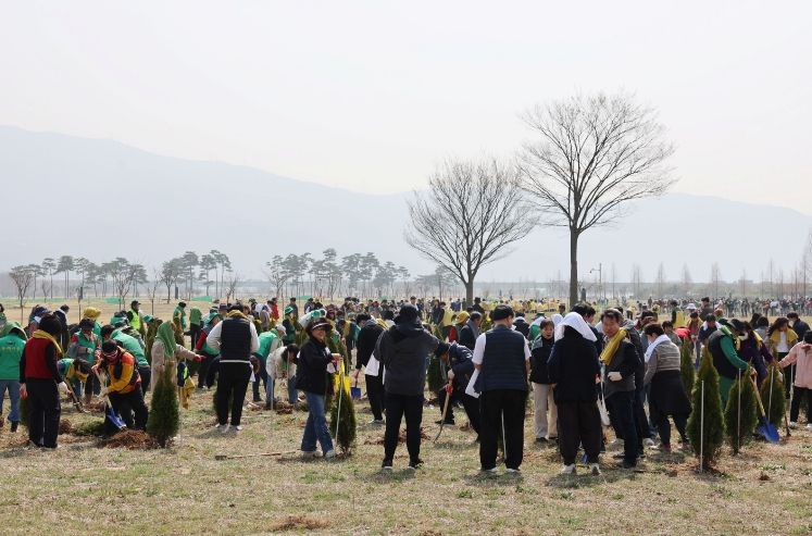 이날 참가자들은 황산공원에서 이팝나무 외 4종, 총 1,500주를 심으며 도심 속 녹지 확충과 탄소중립 실천의 의미를 나눴다. 아울러 ‘내 나무 갖기 행사(친환경화분 1,500개)와 삼색 소원지 달기’ 등 시민 체험 프로그램도 함께 운영해 식목일의 의미를 보다 쉽고 친근하게 공감할 수 있도록 했다.