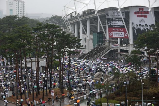 인사이드피플 강애자 기자 | ‘BTS 월드투어 아리랑 in 고양’이 열리는 고양종합운동장, 9일 비가 내리는 궂은 날씨에도 공연장과 인근 상가까지 BTS 콘서트를 즐기기 위해 방문한 국내외 관람객으로 가득찼다.