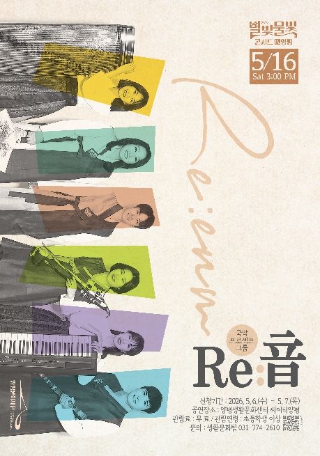 인사이드피플 강애자 기자 | 양평문화재단은 오는 5월 16일 오후 3시, 양평문화재단 2층 씨어터양평에서 ‘별빛물빛 콘서트 in 양평’ 5월 정기공연으로 국악 프로젝트 그룹 Re:音(리음)의 공연 ‘국악의 빛으로 물든 디즈니’를 선보인다.